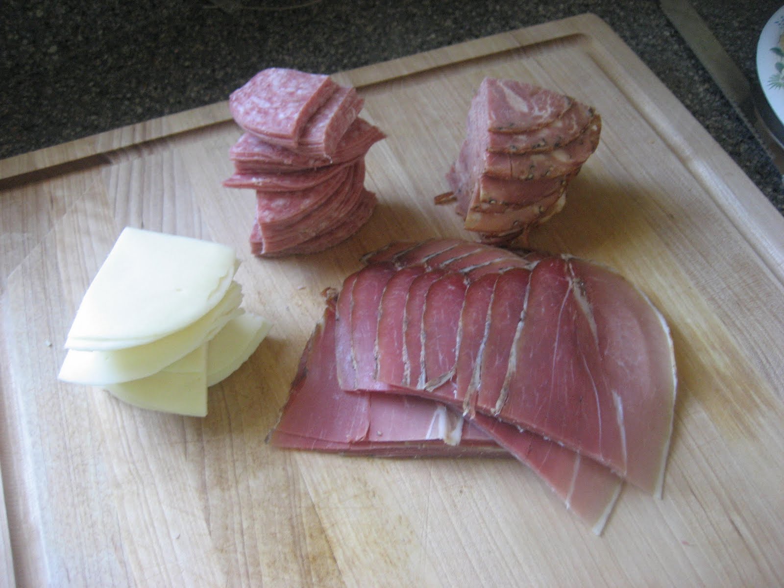 1/2 lb hot or sweet cappicola (ask to taste both the sweet and the hot and decide which you like best)
